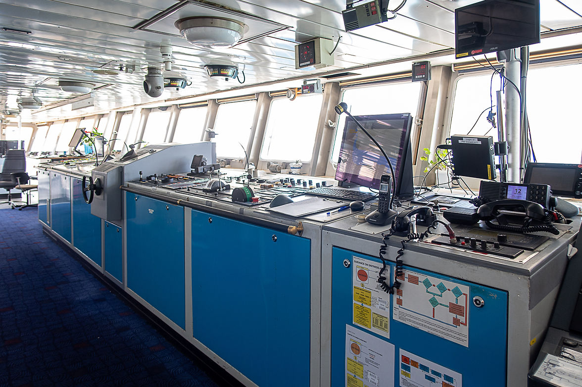 Η γέφυρα εκτείνεται σε όλο το πλάτος του πλοίου, προσφέροντας πανοραμική θέα 270 μοιρών. Ο αξιωματικός φυλακής επιβλέπει τα όργανα, έτοιμος να αντιδράσει σε κάθε συνθήκη. Η κεντρική κονσόλα είναι εντυπωσιακή. Φιλοξενεί τα ραντάρ, το ηλεκτρονικό σύστημα απεικόνισης χαρτών (ECDIS), τα χειριστήρια των προωστήρων και όλα τα όργανα επικοινωνίας και ελέγχου. Εδώ χτυπά η καρδιά της πλοήγησης.